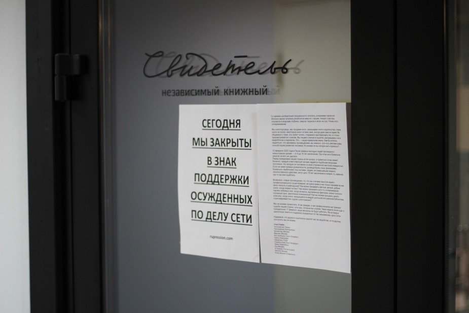 Ряд книжных магазинов 17 февраля на один день приостановили свою работу в знак солидарности с фигурантами пензенского дела «Сети»*, которые были осуждены на большие сроки за то, что «планировали запланировать» теракты в России. 17 декабря к Рочевой в книжный пришли полицейские, чтобы взять объяснение по поводу акции. Она отказалась объяснять свои действия.