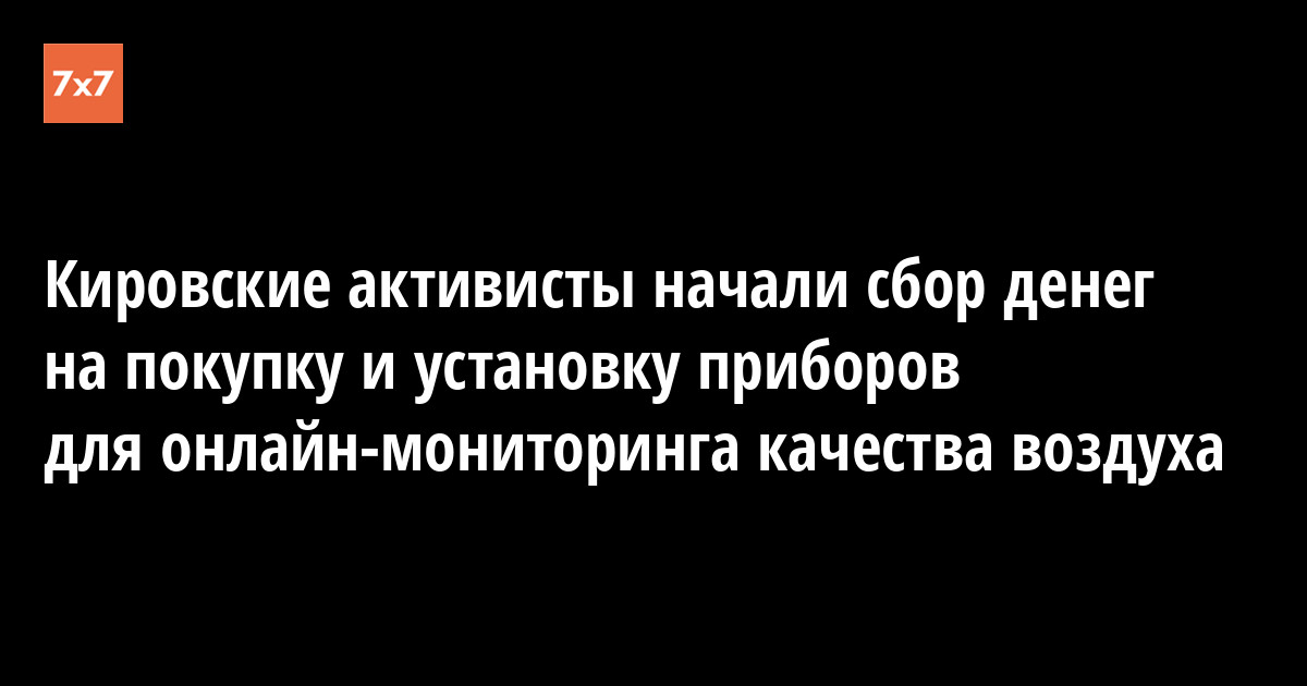 Кировские активисты и участники движения «Красивый Киров» начали сбор средств на покупку и установку устройств для мониторинга качества воздуха. Эти приборы они планируют разместить в нескольких точках города. Результаты будут отображаться на одном из онлайн-сервисов в режиме реального времени, сообщается в группе «Мы в Кирове — за чистый воздух!» «ВКонтакте».