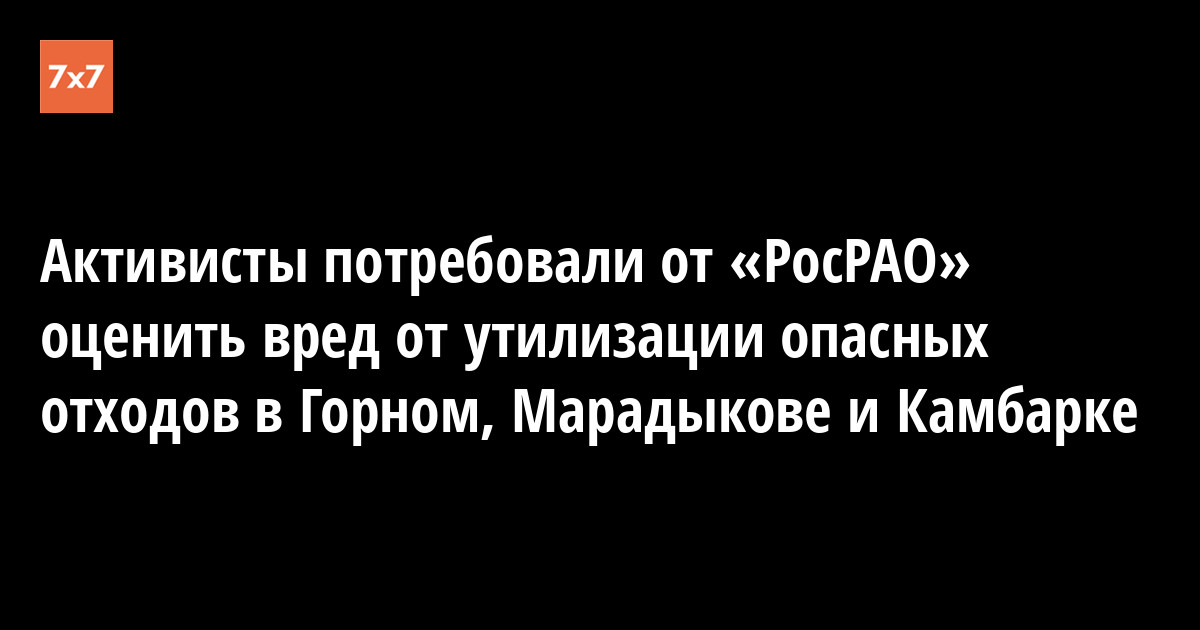 Требование подписали активисты из Саратовской, Кировской, Нижегородской областей, Башкирии и Удмуртии. Они против строительства объектов по утилизации отходов I–II классов опасности на базе бывших заводов по уничтожению химического оружия «Горный» (Саратовская область), «Марадыковский» (Кировская область) и «Камбарка» (Удмуртия).