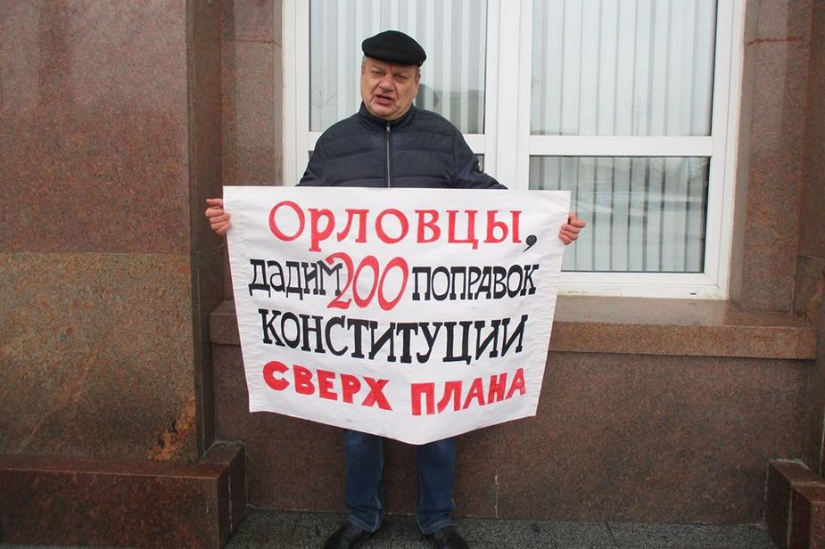 1 февраля орловские активисты вышли на одиночные пикеты против поправок в основной закон страны с лозунгом «Конституции — труба».