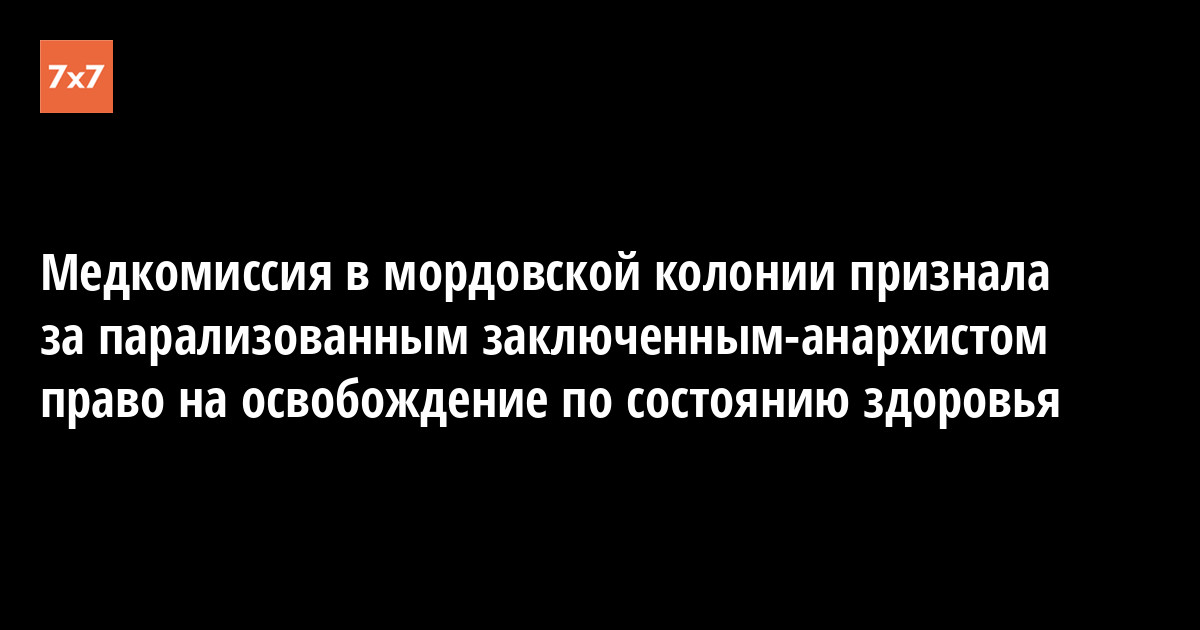 Врачебная комиссия Федеральной службы исполнения наказания (ФСИН) посетила в медсанчасти №13 заключенного анархиста Романова и признала, что его состояние здоровья препятствует отбыванию наказания в колонии. Об этом 11 марта сообщила правозащитник Лариса Романова.