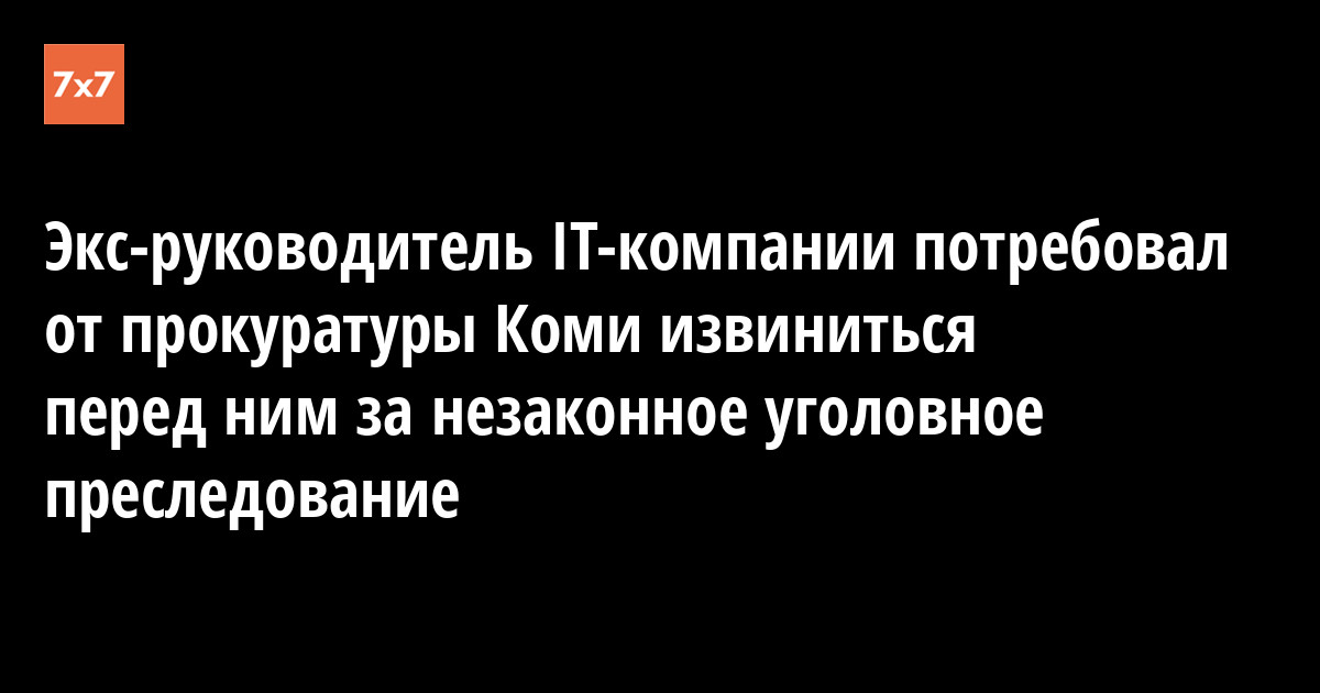 Бывший генеральный директор компании «АйТи Хелп» в Коми Юрий Поливенко пожаловался Генпрокурору Игорю Краснову на то, что прокурор Коми не извинился перед ним за незаконное уголовное преследование и не опубликовал на сайте прокуратуры сообщение о его реабилитации. Копия жалобы имеется в распоряжении редакции «7x7».