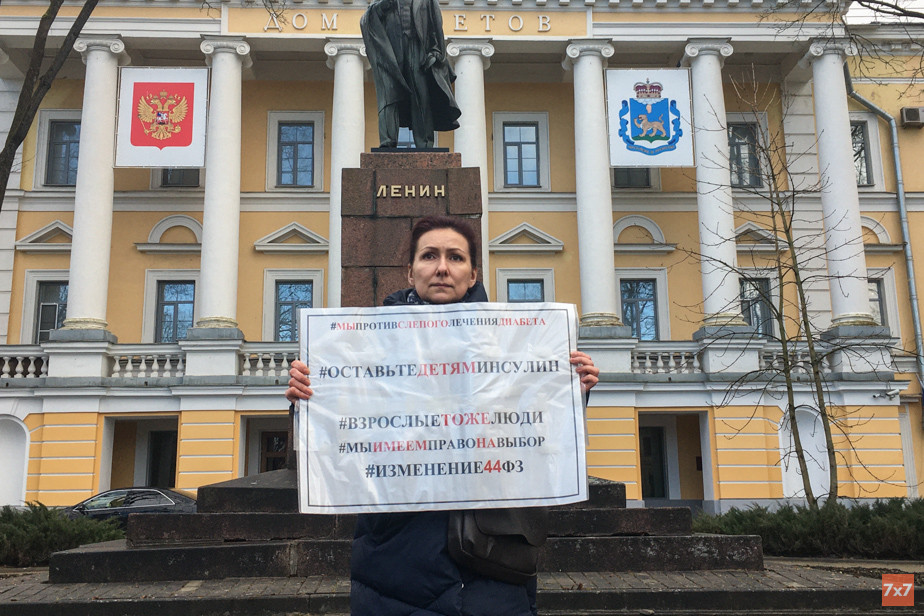 Председатель организации по оказанию помощи инсулинозависимым псковичам «ЭндоЖизнь» Елена Перминова вышла на одиночный пикет к зданию администрации Псковской области с требованием обеспечить больных сахарным диабетом детей качественными зарубежными препаратами и изменить 44-й федеральный закон о закупках, рассказал 20 марта наблюдавший за акцией корреспондент «7х7».
