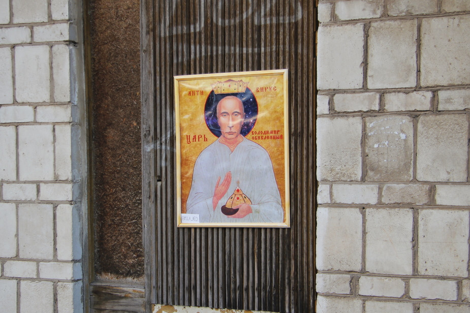 Художник назвал изображенного на рисунке человека царем Владимиром Обнуленным, а под фотографией в Instagram добавил ироничный призыв к горожанам прийти и поклониться к его лику, чтобы защититься от коронавируса, к зданию возле суда на ул. Спасской, 61. Еще одно фото своей инсталляции художник опубликовал 18 марта. Работа посвящена обнулению президентских сроков и поправкам в Конституцию. Она представляет собой подпаленные листы формата А4 с распечатанными на них статьями Конституции, размещенные на доске для объявлений остановочного павильона. На момент публикации новости инсталляцию с остановки сорвали, а «икону» сняли сотрудники полиции.