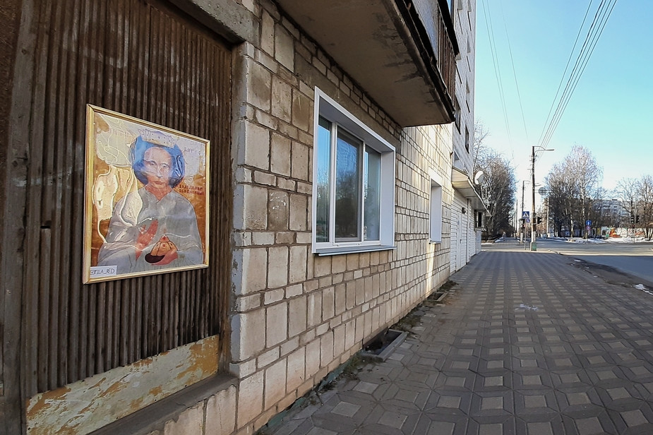 — Как по мне, одно из ключевых правил стрит-арта заставляет выбирать места [для размещения инсталляций и граффити] особым образом, — прокомментировал художник корреспонденту «7х7». — Лучший вариант, когда инсталляция или граффити органично дополняют какой-то объект, как бы вырывая его из контекста обыденного восприятия. Так было с инсталляцией на остановке. Что касается этой работы [иконы с Владимиром Обнуленным], здесь немного другая история. Но роль суда, безусловно, очень важна. Тут главное - не конкретизировать. Это такой обобщенный суд, который одним взглядом этого человека легко контролируется. Речь идет о фиктивности якобы независимой судебной системы. Это та «пасхалка», которая не была озвучена, но которую вы смогли прочитать в работе. Думаю, и другие поймут.