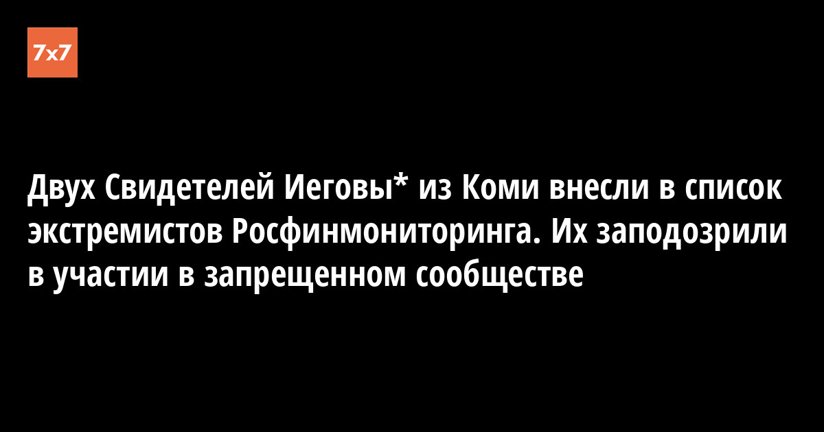 Двух фигурантов дела о продолжении деятельности запрещенного "Управленческого центра Свидетелей Иеговы в России"* в Коми внесли в список экстремистов Росфинмониторинга. Они не смогут пользоваться своими банковскими счетами. Обновление списка Росфинмониторинга отследили 25 марта в тематическом Telegram-канале.