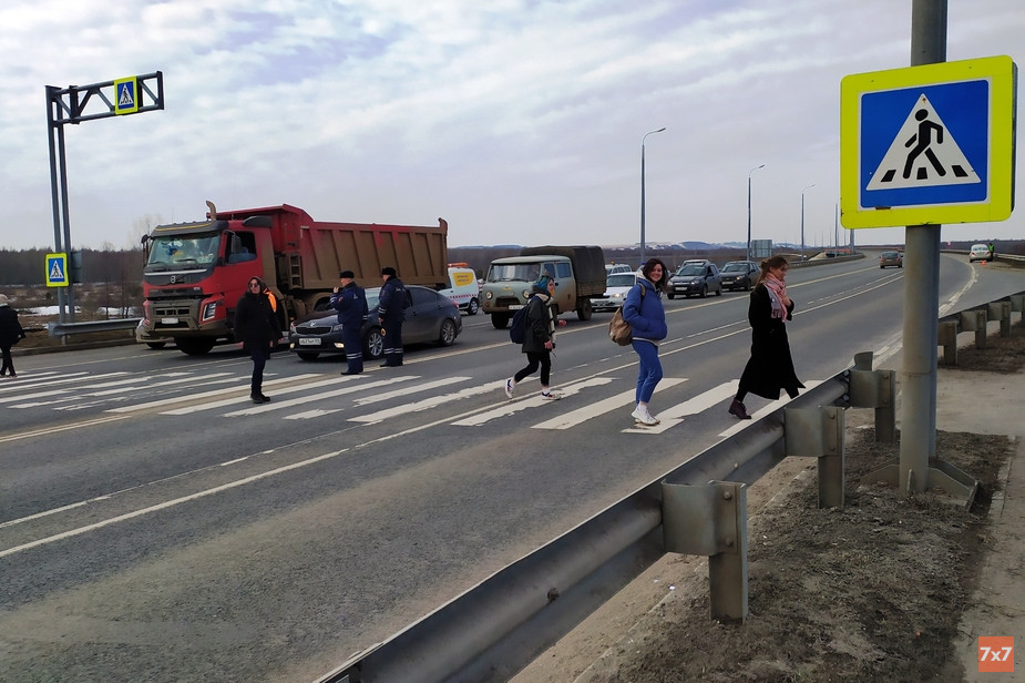 Активисты ходили по пешеходному переходу в течение часа, хотя полностью перекрыть движение на мосту им не удалось. На место проведения акции выехали сотрудники полиции, ГИБДД, дорожной инспекции, сотрудник ижевского отдела «Э». Силовики записали происходящее на видео. Задержаний не было, протоколы на активистов не составляли. Но правоохранители напомнили участникам, что могут привлечь их к ответственности по ст. 19.3 КоАП («Невыполнение законных требований сотрудников полиции»). Сотрудник ГИБДД регулировал движение, пропуская скопившийся автотранспорт. Один из полицейских унес на руках на обочину девушку, слишком медленно переходившую дорогу.