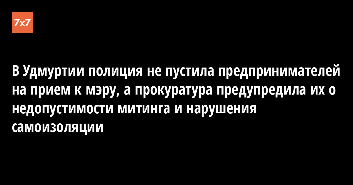 В удмуртском Сарапуле полицейские не пустили несущих убытки из-за режима самоизоляции предпринимателей на встречу с мэром. Прокуратура перед этим выписала одному из бизнесменов предостережение о недопустимости нарушения закона о митингах. Об этом 7 апреля сообщили правозащитники проекта «Апология протеста».