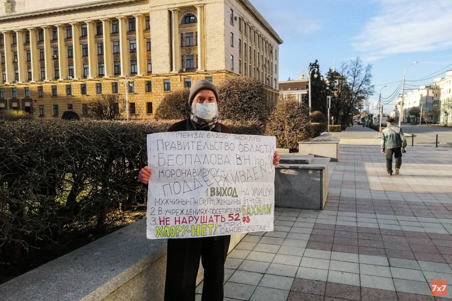 Пензенский эколог и правозащитник Юрий Вобликов 6 апреля вышел на одиночный пикет к зданию областного правительства и потребовал, чтобы работники коммунальных служб перестали обрабатывать подъезды веществами с содержанием хлора.