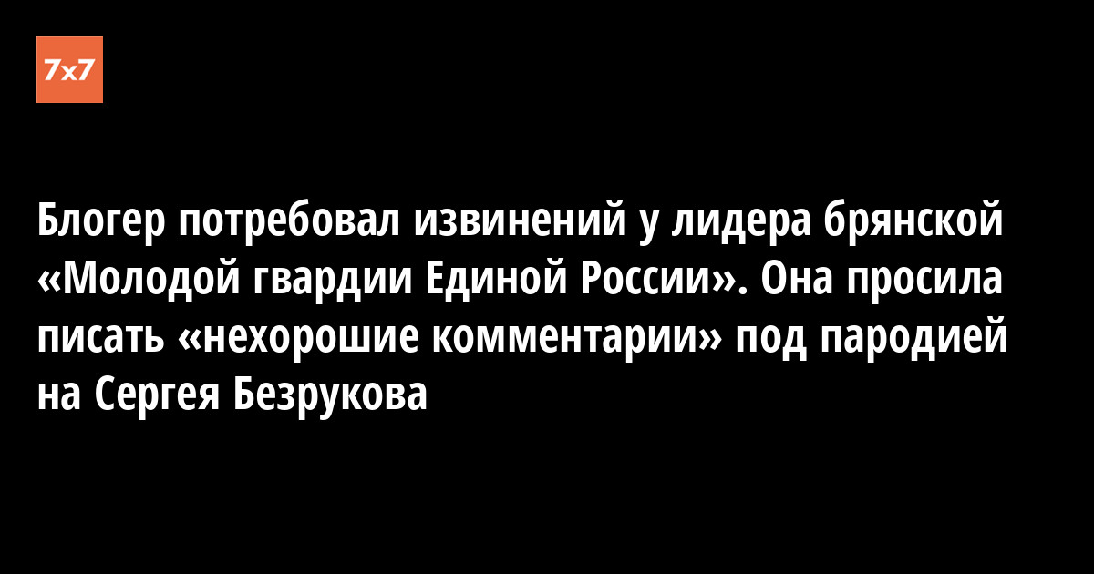 Политик и блогер Павел Чупрунов обвинил руководителя брянского штаба МГЕР Екатерину Щербу в том, что она потребовала от активистов-молодогвардейцев и волонтеров писать негативные комментарии под видео с пародией комика Ильи Соболева на агитационный ролик с участием Сергея Безрукова. Об этом он сообщил в своем посте на «7x7» 9 апреля.