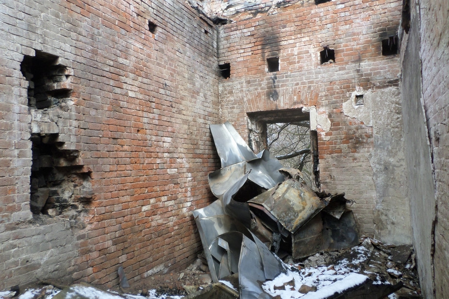 Вандалы уже подготовили к вывозу из дома №5 металлические листы, стопку кирпичей от разобранной печи и стальные швеллеры от лестничных маршей.