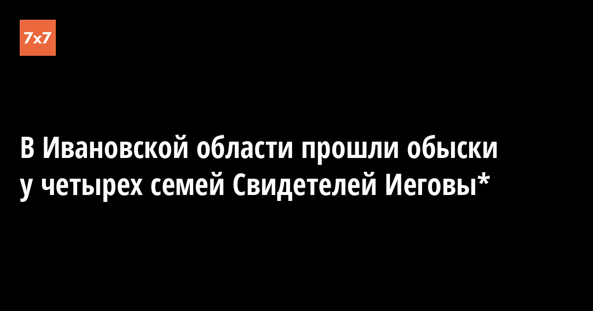 В Тейкове Ивановской области силовики пришли с обысками в четыре семьи последователей Свидетелей Иеговы*. Об этом 14 апреля сообщили на сайте адептов этой конфессии.