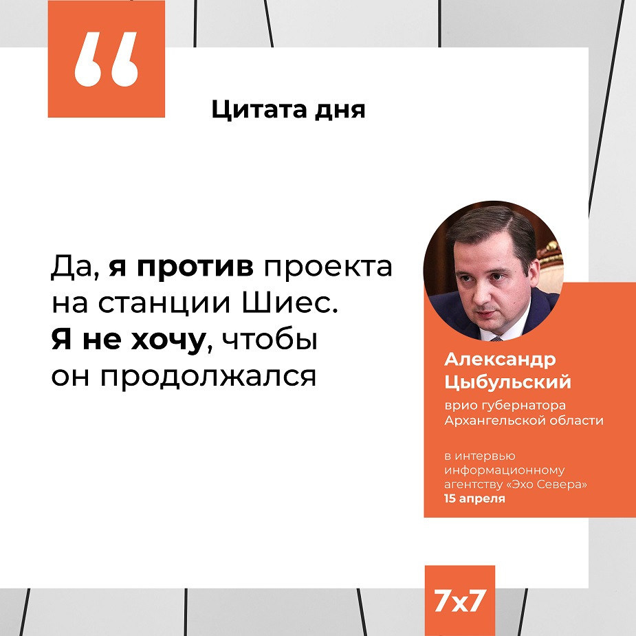 Временно исполняющий обязанности губернатора Архангельской области Александр Цыбульский выступил против продолжения проекта строительства в Ленском районе «Экотехнопарка “Шиес”». Об этом 15 апреля он рассказал в блиц-интервью главному редактору архангельского информационного агентства «Эхо Севера».