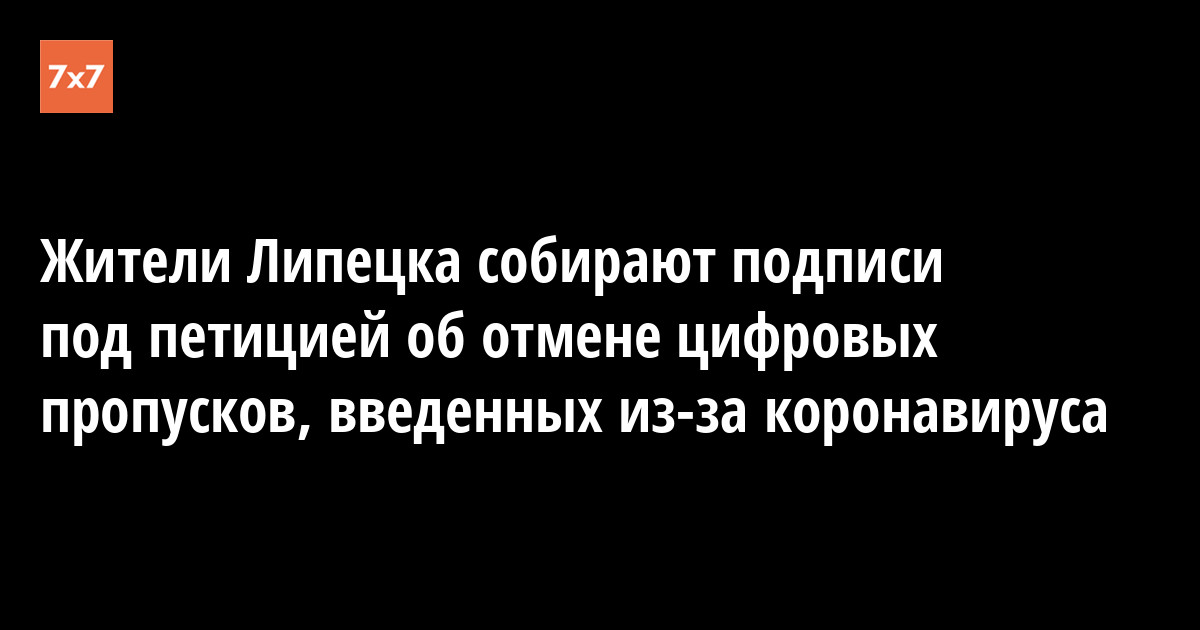 На сайте Change.org появилась петиция, в которой жители Липецка просят губернатора области Игоря Артамонова отменить цифровые пропуска для передвижения по городу. Люди ссылаются на то, что это ограничение противоречит законодательству, а некоторых жителей полностью лишает возможности выйти из дома.