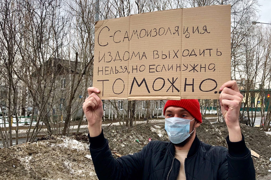 В Сургуте (Ханты-Мансийский автономный округ) составили протокол по статье 20.6.1 Кодекса об административных правонарушениях (КоАП) на местного активиста Олега Избаша за одиночный пикет против самоизоляции. Об этом он 20 апреля сообщил «7х7».