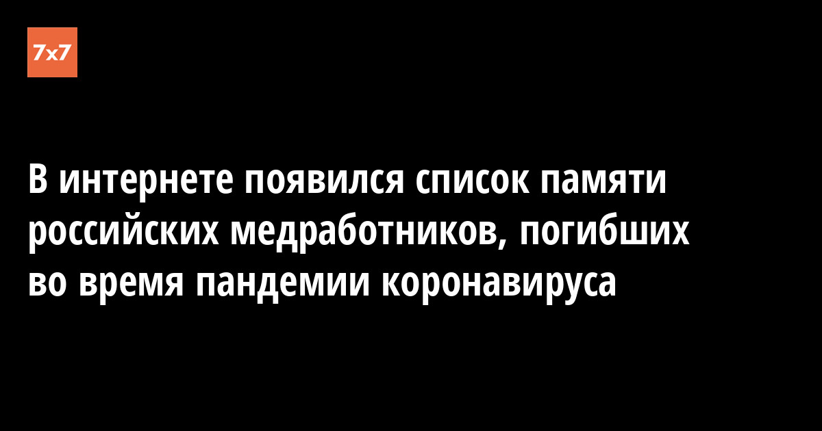 В интернете появилась страница с именами врачей, медсестер, санитарок, лаборантов и других медицинских работников из разных регионов России, умерших во время пандемии коронавируса. Ее назвали списком памяти. Создатели страницы предлагают дополнять его и присылать информацию о погибших медработниках.