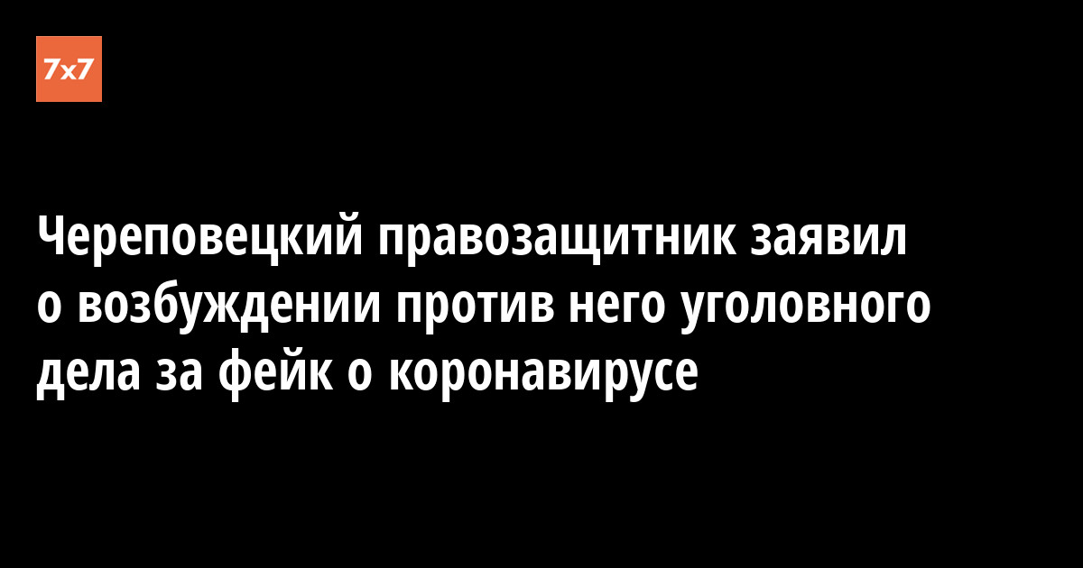 Глава вологодского отделения движения «За права человека» (находится в Череповце) Григорий Винтер сообщил «7x7», что в отношении него возбуждено уголовное дело за публичное распространение ложной информации о коронавирусе (статья 207.1 УК РФ).