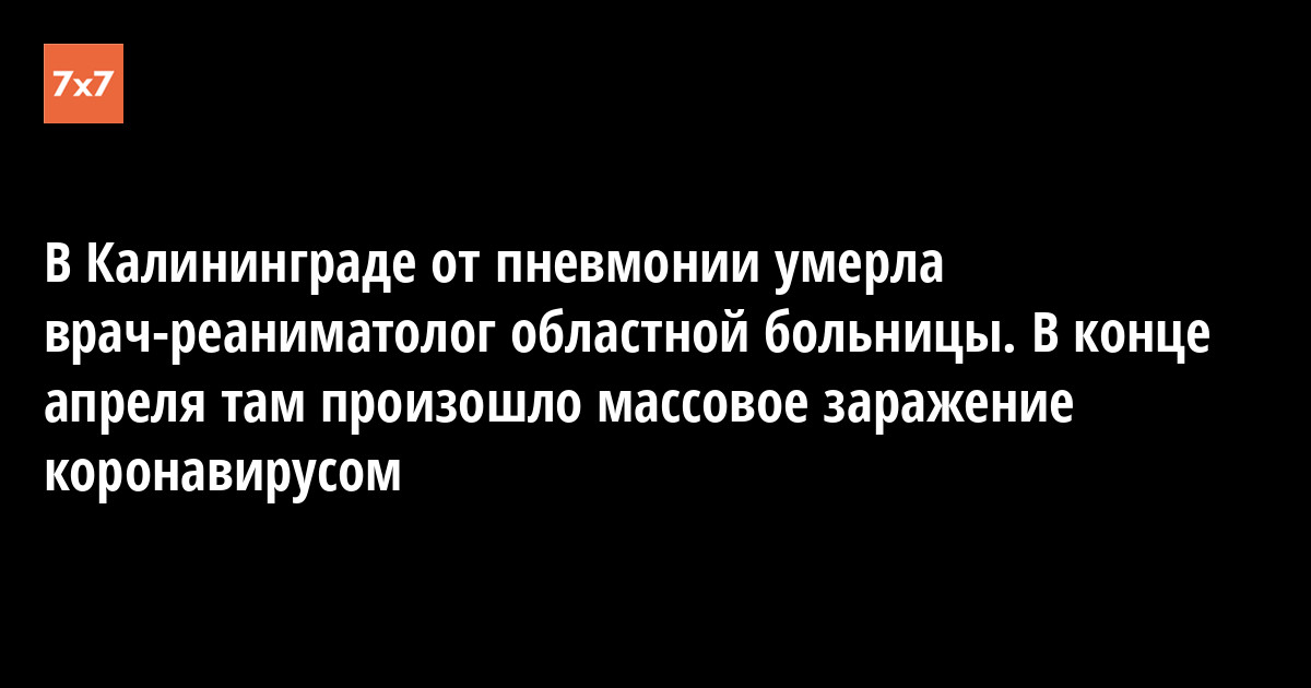 В Калининграде от последствий тяжелой пневмонии скончалась врач-реаниматолог с подозрением на коронавирус. В конце апреля в Калининградской областной клинической больнице, где работала умершая, произошла вспышка коронавируса. Об этом 12 мая сообщила «Российская газета».