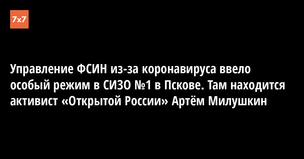 Пресс-служба регионального УФСИН утверждает, что у содержащихся под стражей людей коронавирус не обнаружен. В учреждении находится псковский активист Артём Милушкин, которого следователи подозревают в сбыте наркотиков. В конце апреля адвокат Владимир Данилов настаивал, чтобы его подзащитного освободили из СИЗО, поскольку тот является носителем нескольких хронических заболеваний. Суд отказался изменить меру пресечения.