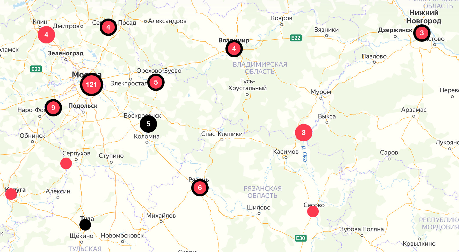 В настоящее время на карте отмечено 226 обнаруженных проблем и 160 умерших медиков. Больше всего проблем в Москве, Подмосковье и республиках Кавказа.