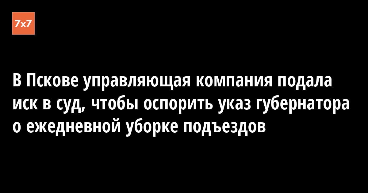 Псковская управляющая компания «Пароменское» потребовала через суд признать незаконным пункт о ежедневной влажной уборке подъездов в указе губернатора Михаила Ведерникова. В компании сказали, что им не оплачивают дополнительную работу, обусловленную пандемией коронавируса. Об этом «7х7» рассказал член Общественной палаты региона Сергей Корсаков.