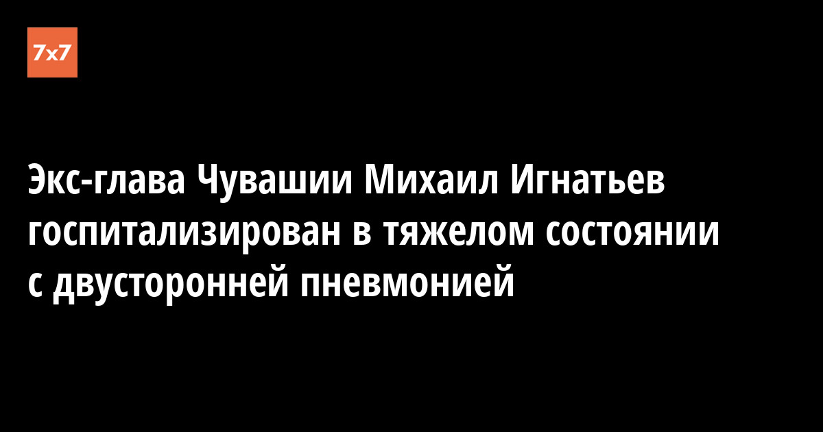 Бывший руководитель Чувашии Михаил Игнатьев госпитализирован в Санкт-Петербурге с двусторонней пневмонией. Об этом 27 мая сообщил источник газеты «Коммерсантъ».