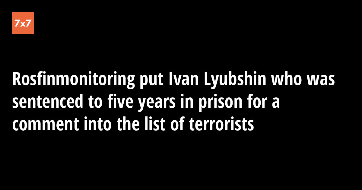 The Federal Service for Financial Monitoring put Ivan Lyubshin from Kaluga into the list of terrorists and extremists. The relevant piece of news was published on May 28 in a Telegram channel which uses a script to track changes in the list.