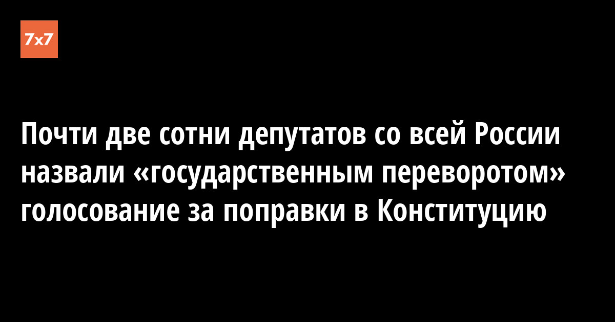 Около двухсот региональных и муниципальных депутатов из разных регионов России подписали обращение с критикой новых поправок в Конституцию. Они считают, что вся реформа задумывалась только как способ незаконного продления президентской власти Владимира Путина. Обращение было опубликовано 3 июня в Facebook.