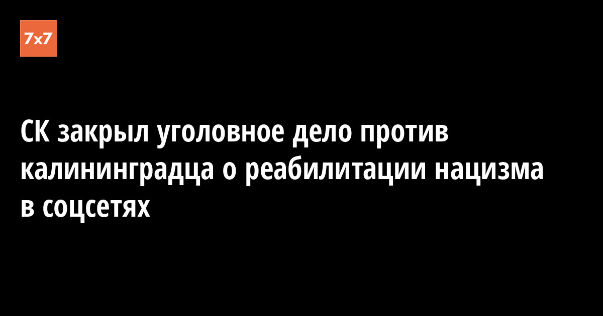 Следственный комитет РФ закрыл уголовное дело в отношении калининградского блогера Николая Горелова (Кириченко), который обвинялся в реабилитации нацизма. Как сообщил «7х7» сам калининградец, он уже получил постановление о закрытии дела в связи с истечением срока давности.