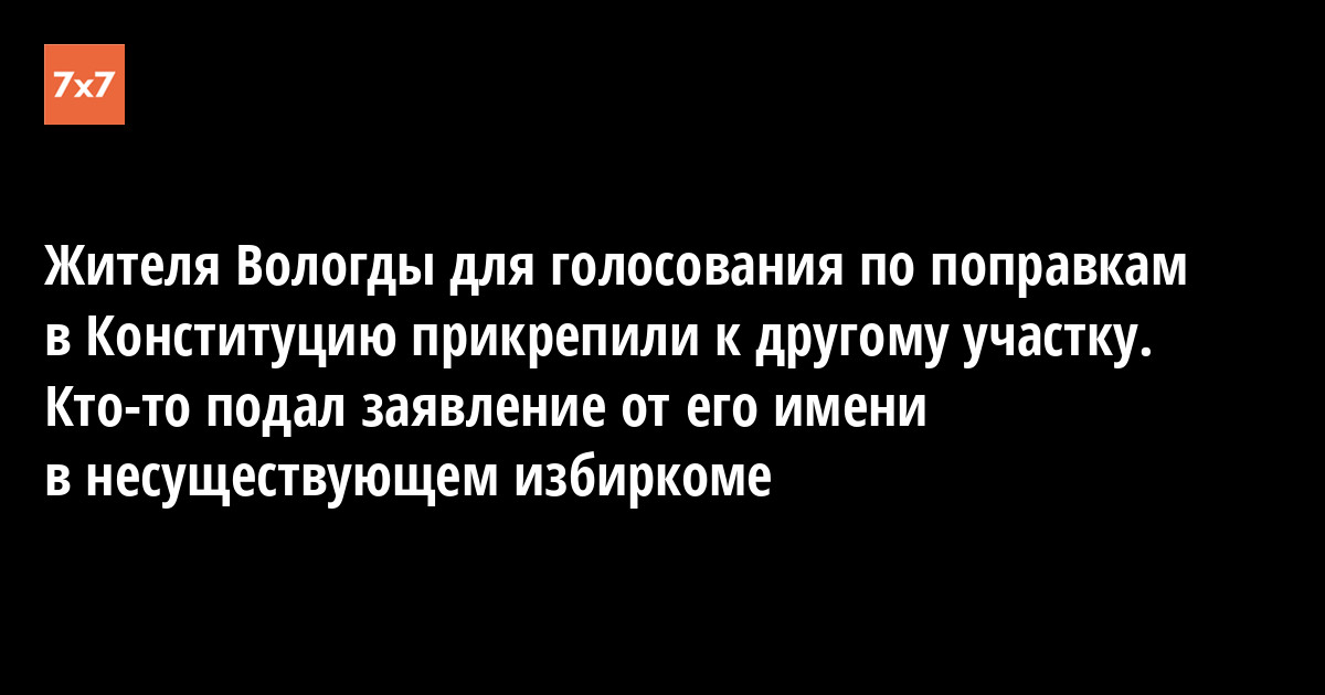 В Вологде работника одной из госкорпораций прикрепили для голосования по поправкам в Конституцию к избирательному участку в другом районе города. Павел (он попросил не называть своей фамилии, так как опасается проблем на работе) рассказал «7x7» о письме, которое он получил по электронной почте с сайта госуслуг. В нем говорится, что он сам написал заявление о смене участка, хотя он этого не делал.