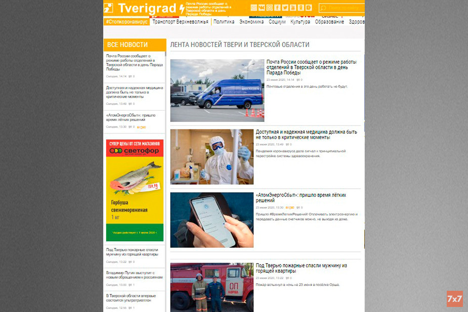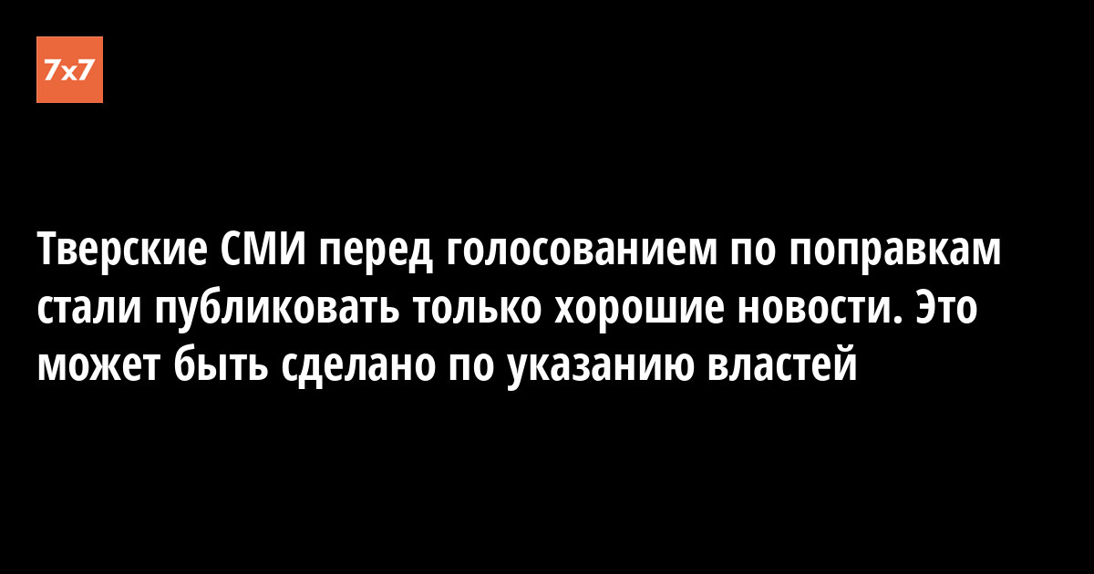 Корреспондент интернет-журнала «7x7» проверил сайты крупнейших тверских СМИ: «Твериград», «Тверское информационное агентство» и «Афанасий-Бизнес». За последние дни там были опубликованы только хорошие или нейтральные новости, хотя еще за неделю до этого те же самые издания значительную часть новостей писали про ДТП или криминал. Единственной новостью из раздела «Происшествия» в этих СМИ стала публикация о пропаже девушки-подростка.
