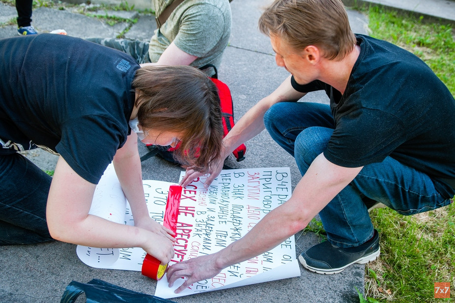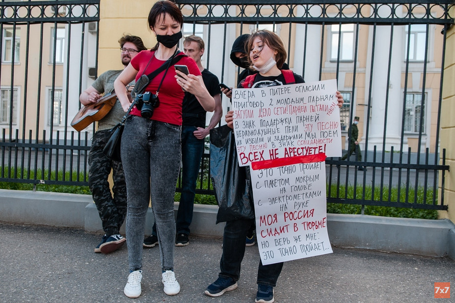 — Это наша реакция на приговор по делу «Сети»* и задержание людей после оглашения приговора. Они просто пришли поддержать фигурантов дела «Сети»*, пели песни, а их избили и задержали. В том числе избили молодую женщину — жену Юлия Бояршинова. Это вызывает возмущение у всех здравомыслящих людей, и мы пришли выразить свое мнение по этому поводу.