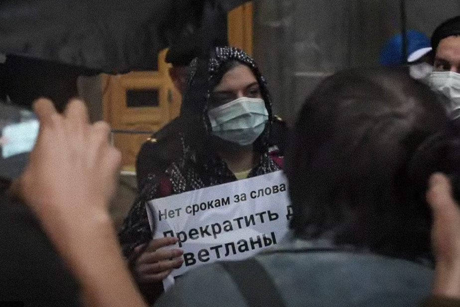 Полицейские задержали 3 июля Софью Крапоткину, заместителя главного редактора «7x7» Максима Полякова и журналистов еще нескольких изданий возле здания ФСБ на Лубянке. Они стояли там в одиночных пикетах с плакатами «Нет срокам за слова. Прекратить дело Светланы Прокопьевой».