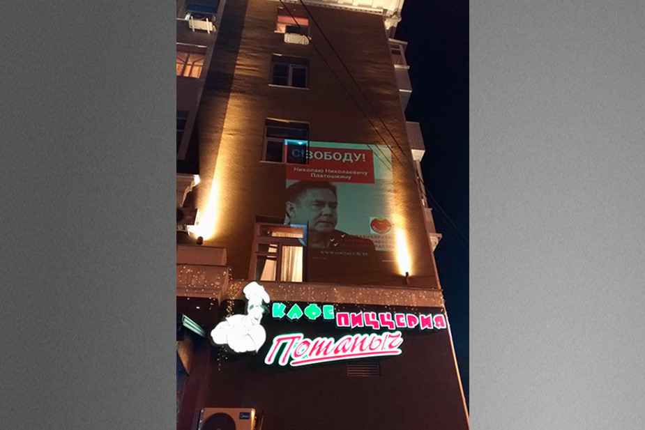 Поздним вечером 5 августа активисты направили медиапроектор на жилое здание возле Соборной площади и продемонстрировали слайды с призывами прекратить уголовное преследование Николая Платошкина, отправить в отставку президента РФ Владимира Путина, распустить Госдуму и назначить досрочные парламентские и президентские выборы. В это время на площади собралось большое количество людей в связи с торжествами по случаю Дня города.