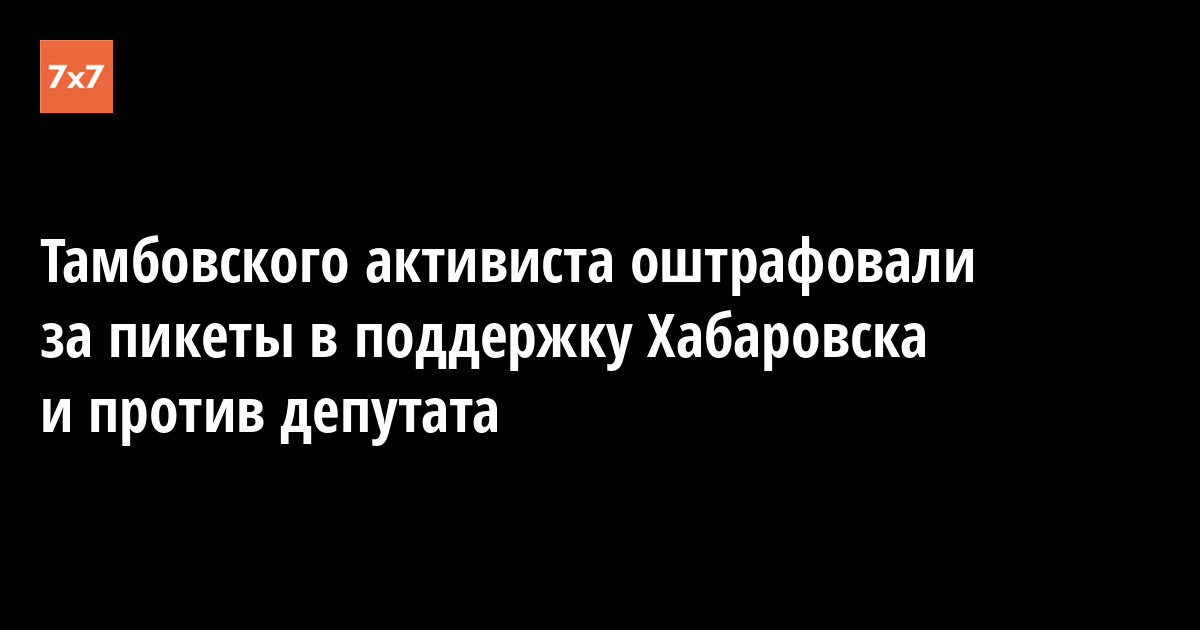 Ленинский районный суд Тамбова назначил члену регионального совета «Открытой России» Андрею Полякову штрафы в размере 10 тыс. руб. за одиночный пикет солидарности с участниками протестов в Хабаровске и в размере 1 тыс. руб. за пикет в поддержку лишения местного депутата-строителя звания почетного гражданина города. Об этом «7х7» рассказал адвокат «Правозащиты Открытки» Дмитрий Пятахин.