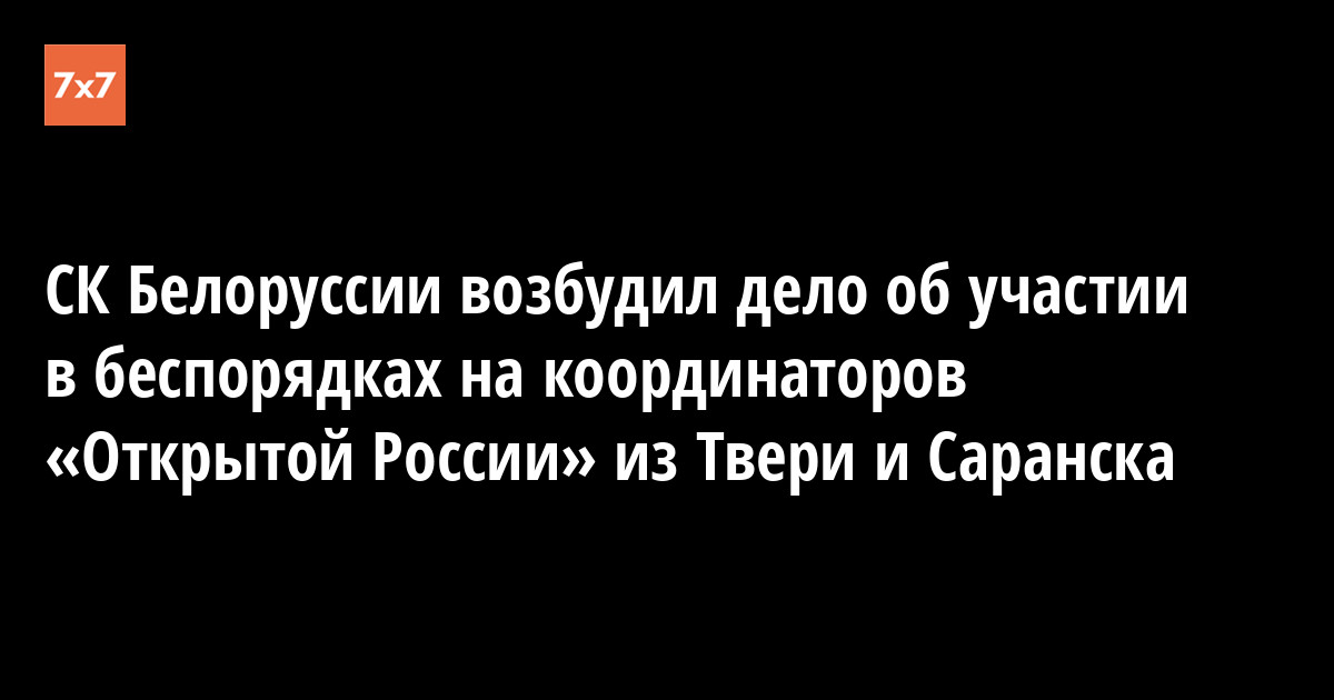 Следственный комитет РБ заподозрил активистов «Открытой России» Артёма Важенкова и Игоря Рогова в участии в массовых беспорядках. Они находятся в статусе подозреваемых. Об этом 12 августа сообщило информагентство "БелТА" со ссылкой на СК Белоруссии.