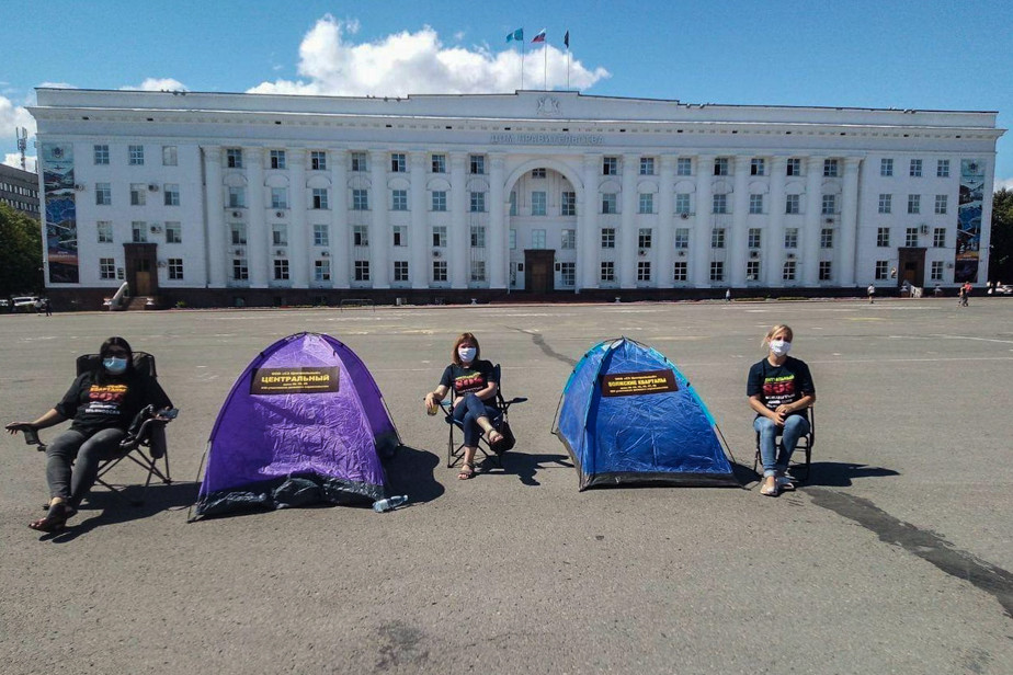 Валентина Цветкова и еще три дольщицы микрорайона Центрального 27 июля вышли к зданию правительства Ульяновской области с пикетом. Вместо плакатов они установили палатки как символ нерешенной проблемы.