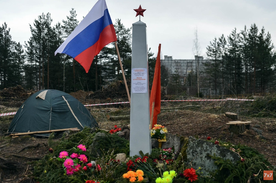 Памятник Якову Степанову был установлен в Каменном бору в Петрозаводске в середине 1990-х годов на месте предполагаемой гибели красноармейца, где в феврале 2020 года сразу на двух участках начались вырубки. Первый участок разрабатывал частный предприниматель под строительство спорткомплекса, второй начали готовить под строительство детского сада на 280 мест по госзаказу карельского правительства. Во время вырубок строители разрушили памятник Якову Степанову. Городские власти пообещали восстановить его осенью 2020 года. Защитники парка обратились в полицию по факту сноса памятника, сами заказали и установили новый памятник.