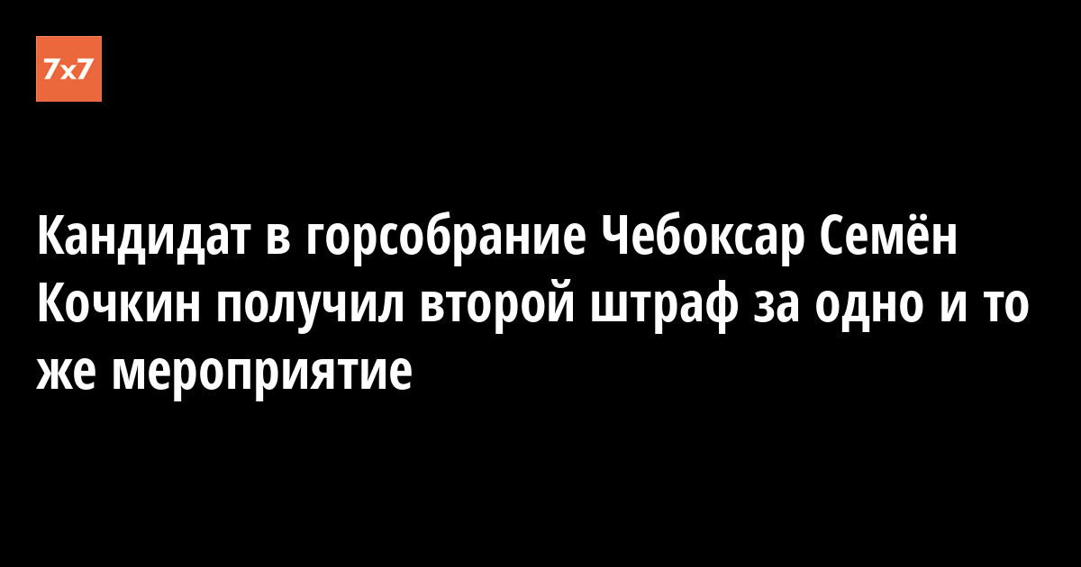 Координатор штаба Навального в Чувашии и кандидат в горсобрание Чебоксар на выборах 13 сентября Семён Кочкин оштрафован судом на 10 тыс. руб. за призыв к избирателям прийти на встречу с ним, сообщил «7х7» его защитник Алексей Глухов 24 сентября. Ранее он получил штраф 11 тыс. руб. за проведение этой встречи.