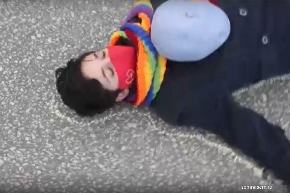 The queerrrriot Syktyvkar initiative group of LGBT+ and their supporters held the rally in Stefanovskaya Square, near which the Administration of the Head of the Komi Republic and the building of the State Council of the republic are located. Several people walked around the square with their hands behind their backs and then lay down on the asphalt, and their silhouettes were outlined in white chalk.