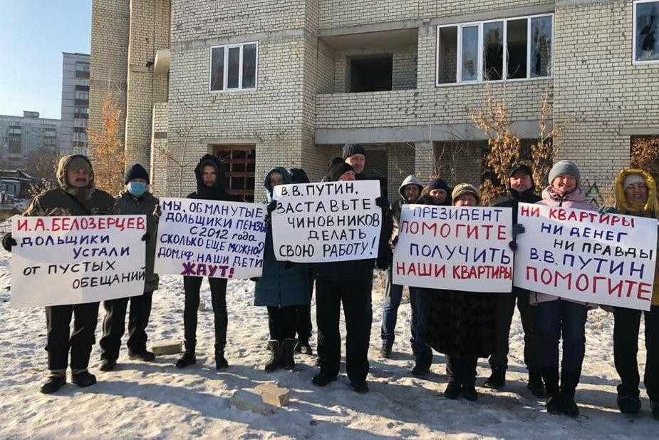 Сотрудники полиции заинтересовались коллективным видеообращением к президенту Владимиру Путину, которое в декабре 2020 года записали обманутые дольщики жилого комплекса «Янтарный» в Пензе. Об этом «7х7» сообщил один из участников ролика, дольщик Владислав Казаков. В записи обращения приняли участие около 20 человек, которые стояли на фоне недостроенного дома с плакатами.