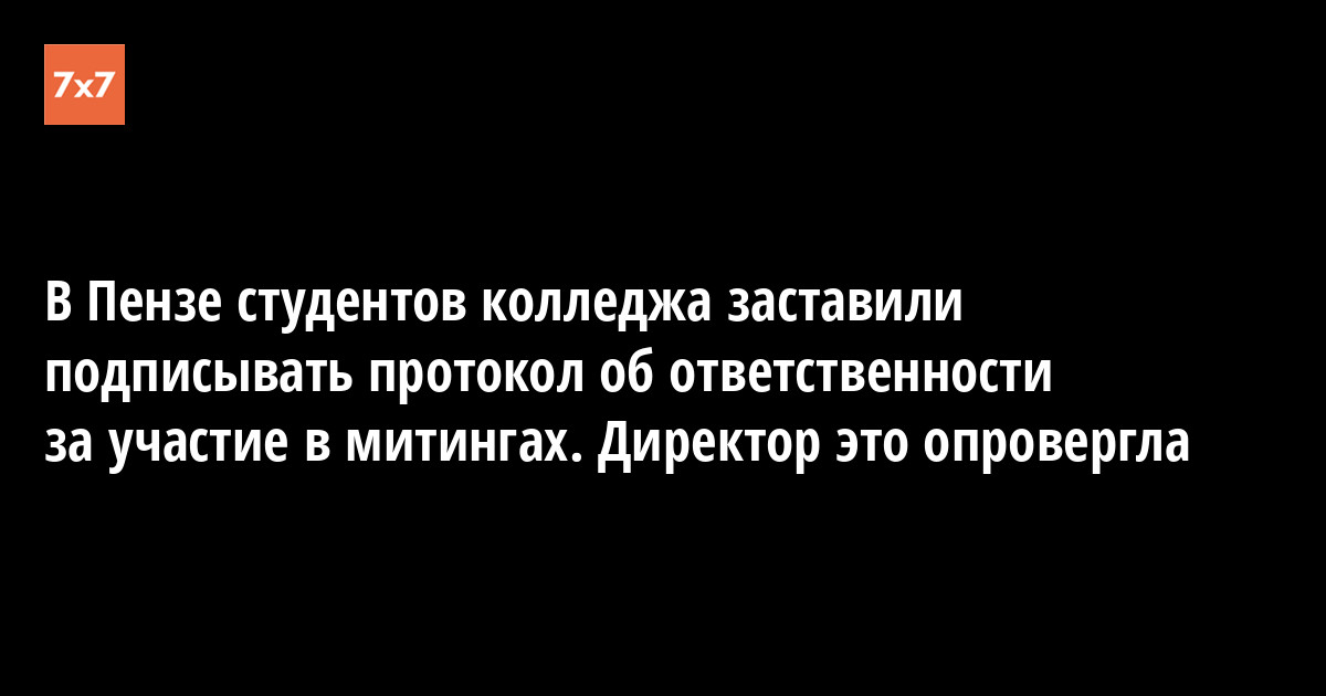 Директор колледжа Татьяна Пронькина в разговоре с корреспондентом «7х7» опровергла информацию и сообщила, что никаких протоколов студентам подписывать не дают. Откуда у студентов появились фото таких протоколов и как они попали в СМИ, Татьяна Пронькина не знает.