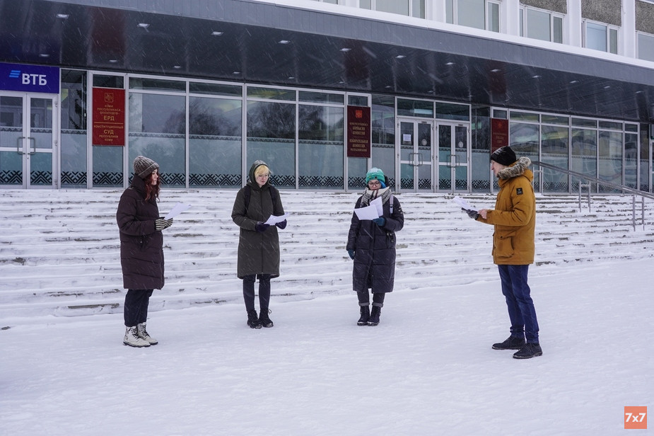 Активисты провели акцию 4 февраля на главной площади Сыктывкара, где расположен Конституционный суд Коми. Они разделились по ролям и разыграли последнее слово Алексея Навального на суде. Во время чтения к «судье» и «прокурору» несколько раз подходил человек в маске президента России и переговаривался с ними. Организаторами чтения выступила сыктывкарская инициативная группа ЛГБТ+ и их сторонников queerrrriot.