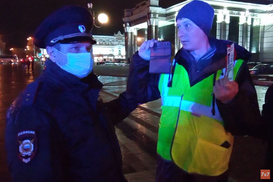 В Пензе несогласованная акция в поддержку Алексея Навального проходила на пешеходной улице Московской, рядом с памятником жертвам политических репрессий. Она длилась почти пять часов: последние участники вышли из оцепления сотрудников полиции в 23 часа 45 минут. Все это время акцию освещали корреспонденты «7х7» Евгений и Екатерина Малышевы. На них были жилеты ярко-зеленого цвета с надписью «Пресса», бейджи установленного образца, при себе имелись редакционные задания и удостоверения журналистов.