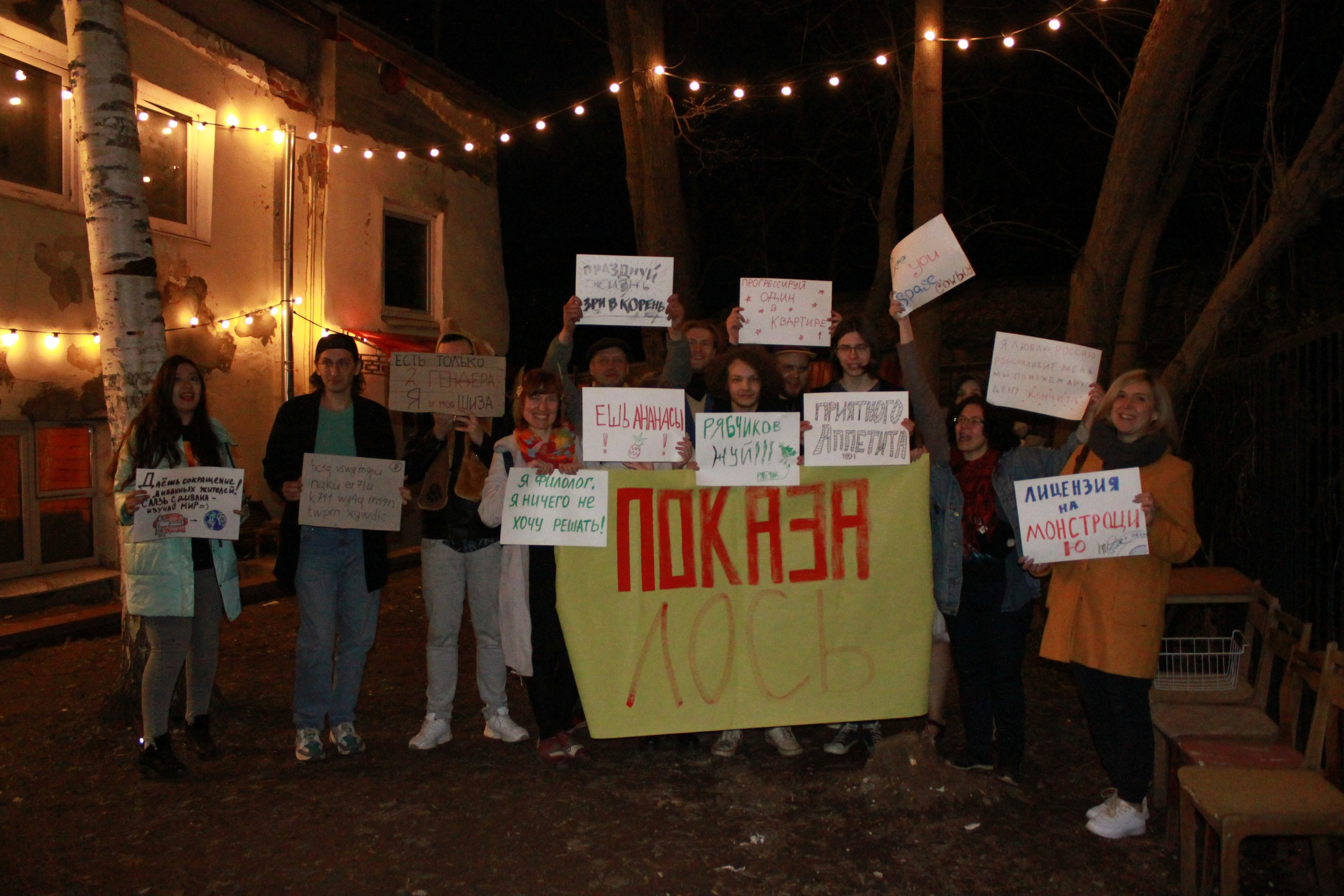 Во владимирском Luzer Bar при центре современного искусства «Флигель» 1 мая прошла вечеринка с элементами Монстрации. Участники узнали об истории акции, нарисовали плакаты и устроили шествие по двору. Об этом «7х7» рассказала одна из организаторов мероприятия Ирина Курочкина.