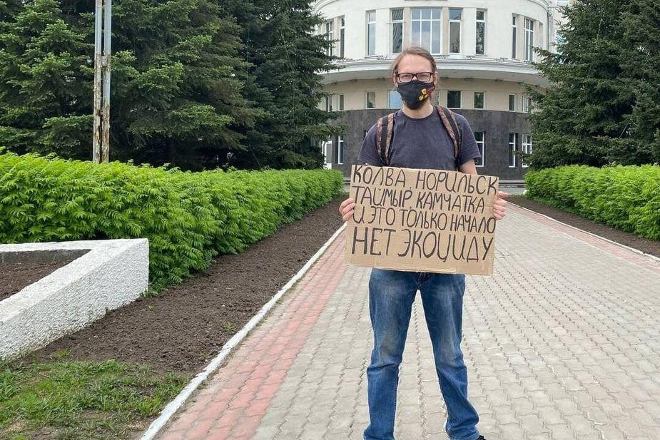 A report for violating coronavirus restrictions was drawn up against environmental activist Evgeny Korsak due to him attending a picket on May 21 to draw attention to the recent oil spill in the Kolva river (the Komi Republic). Sever.Realii* reports that.