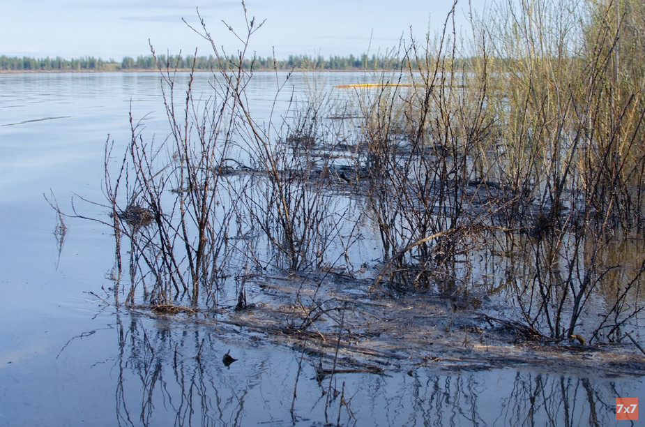 Следы нефти видны на обоих берегах реки Колвы, островах и протоках на реке Печоре в районе деревни Новикбож. Экологи сообщили, что нефть остается на нескольких километрах берегов островов Ыжди, Новикди, берега протоки Игашар.