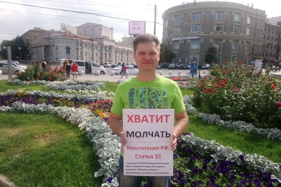 Денис Палашкин вышел на пикет с плакатом «Хватит молчать» и цитатой из статьи 31 Конституции РФ о праве граждан «собираться мирно и без оружия». Его задержали и доставили в воронежский отдел полиции № 6. Там, по данным медиапроекта «ОВД-Инфо», на него составили протокол по статье о повторном нарушении установленного порядка проведения акции (ч. 8 ст. 20.2 КоАП). Активиста оставили на ночь в отделе полиции до суда, который должен состояться в воскресенье, 29 августа.