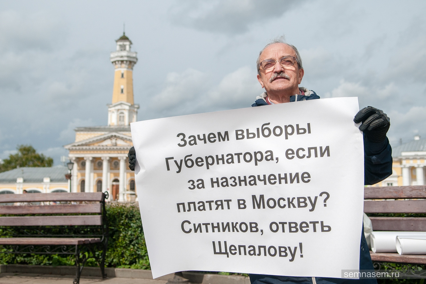 Активисты общественной организации «Народовластие» 3 сентября стояли в пикетах в центре Костромы: на площади Сусанинской и возле здания областной администрации на улице Дзержинского. Члены Женского союза Костромской области проводили пикетирование на площади Мира. Общественники вышли с плакатами «Костромская область — колыбель российской коррупции. Ситников, ответь Щепалову!», «Зачем выборы губернатора, если за назначение платят в Москву? Ситников, ответь Щепалову!» и «Депутат Щепалов обвинил окружение губернатора во взятках. Где расследование?».