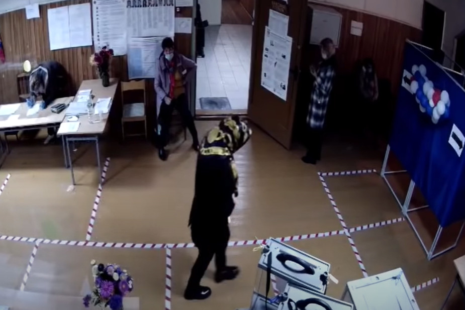 Судя по записи с камер видеонаблюдения, члены УИК имитировали явку избирателей, для чего переодевались в подсобном помещении и заходили на участок в новых нарядах.